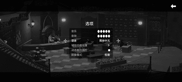 游戏采用独特的黑白艺术风格,营造出压抑而紧张的氛围,使玩家沉浸在黑暗世界中。