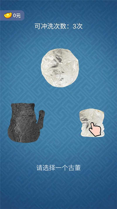 2、随意选择一块石头进行勾钓,出来结果后三选一,选择自己心仪的古董;