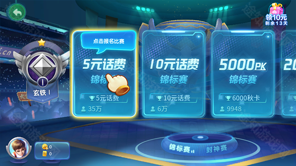 2、接着选择“锦标赛”,这个锦标赛则就是可以赢话费的打牌模式