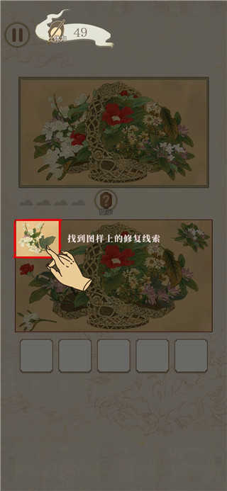 1、游戏开始,对比上下两幅画,上面为原作,下面是需要修复的。