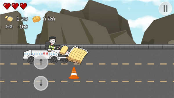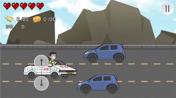 王牌科目三游戏玩法也非常简单,首先我们进入游戏,这里首先是地面的躲避玩法,玩家需要躲避障碍物保证安全,比如车辆、路障和小蔡等,然后也需要拾取路途中的被子,被子可以加分数和恢复爱心,这样玩家就算是撞到障碍物也不会那么快结束游戏。