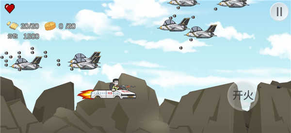 当达到一定路程的时候开车的速度会变的很快,这个时候就非常考验玩家们的应变能力,当收集了20床被子之后就可以进入到空战模式,在空战模式中我们需要躲避敌人的子弹将其击倒,拾取月饼可以完成游戏进度,如果不想空战可以降落然后继续玩躲避障碍的玩法,当月饼拾取到一定数量即可通关游戏。