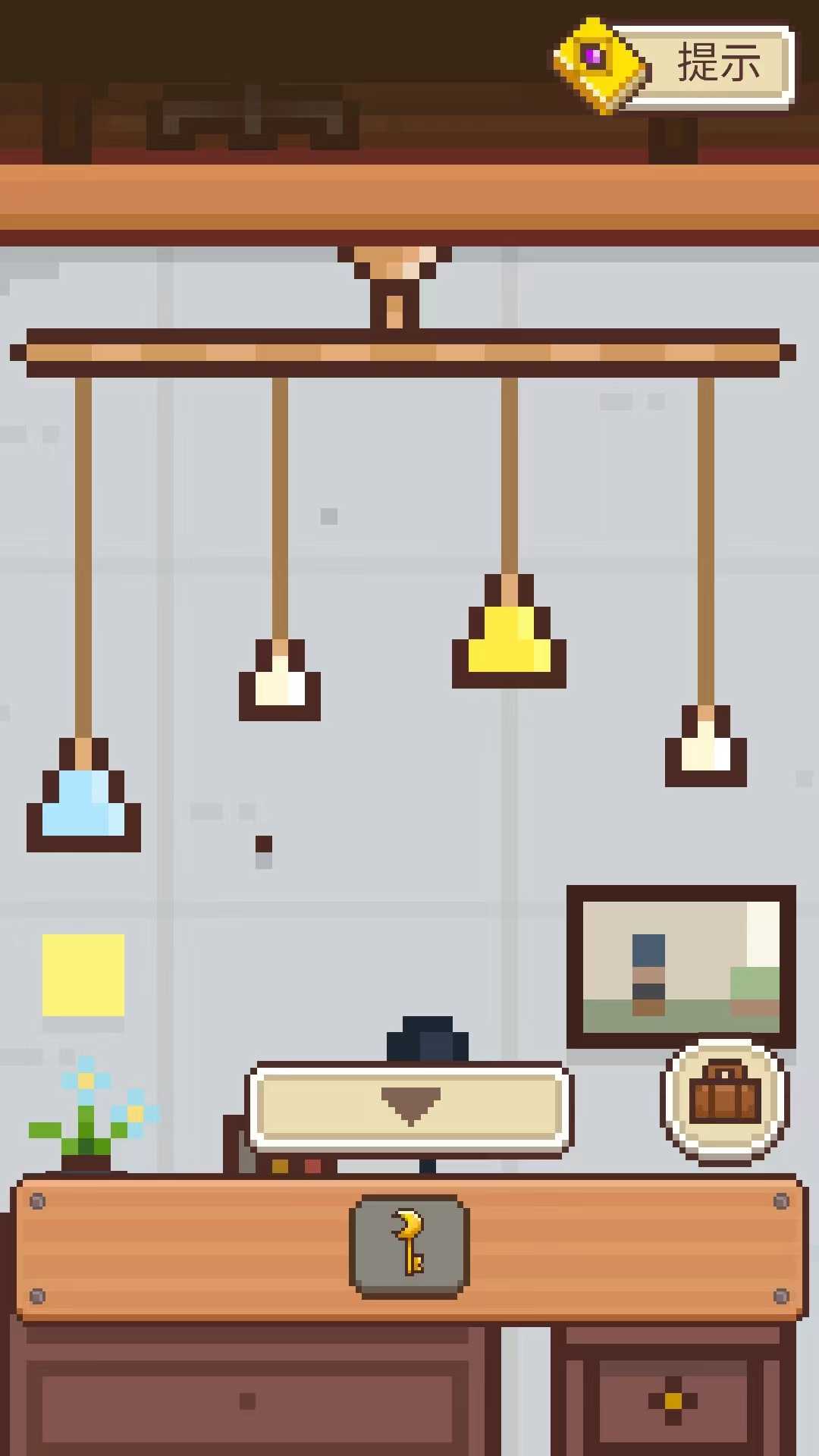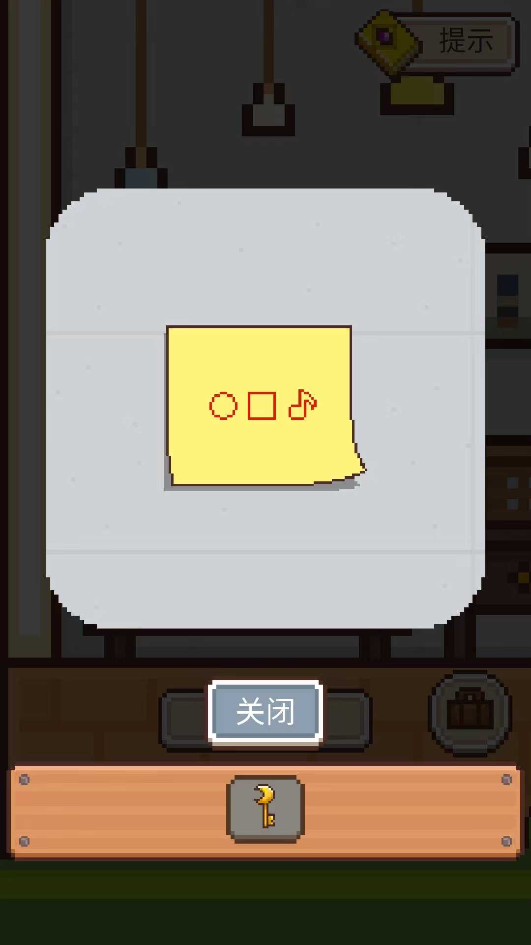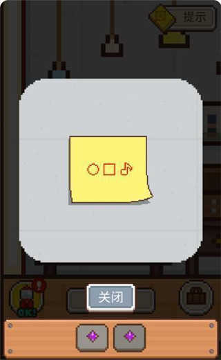 2、月亮房:点击小男孩的右手边的墙上,上面挂着的是现在这间屋子的钥匙。旁边柜子上有一本黄色的书,那本书是作者为玩家准备的全集攻略(需要看广告获得提示哦),这本攻略只是阶段性的攻略,不会提醒太多。墙上有一张黄色的提示贴:上面是三个图案,分别是圆形,方块和音符。提示贴的背面是:213。在门旁边的小柜子上有一个小木盒,按照刚才提示贴的内容,按顺序按下图案,打开盒子会得到四色花房间的钥匙。