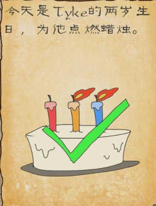 第一关:点燃中间的蜡烛,接着将手机横放点燃另一边的蜡烛。