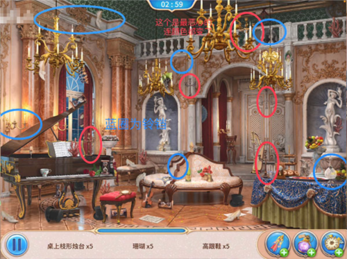 1、需要找到的物品用红色标记标明出来,且红圈内为易找不到的物品,部分明显物品没有标出