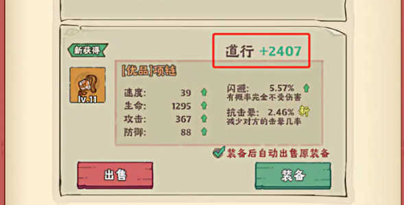 2、开局进入游戏,前期就是根据主线任务引导摇井掉落装备,并不断替换道行更高的装备,转到高级的装备会附带额外属性,如:吸血、连击等。