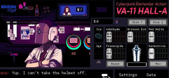 赛博朋克酒保行动英文名称为“va11halla”,是一款移植自steam超人气文字冒险游戏,游戏画风精美,融合了二次元漫画和复古风格的元素,给人一种奇特而独特的感觉,而玩家可以在游戏中的点唱机中选择任一首属于自己的十二首歌曲来播放,每一首都别具一格,让人回味无穷。