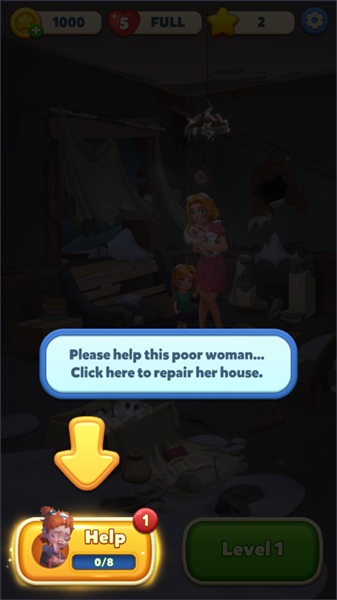 1、在进入游戏后会有相应的指引,通过点击图标来进行消除帮助画面中的角色;