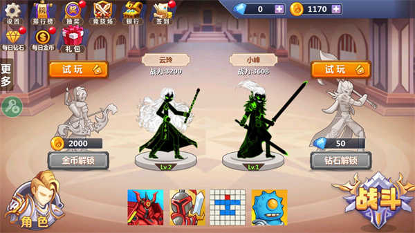 游戏中玩家同时能上阵四名火柴人英雄,点击即可切换。