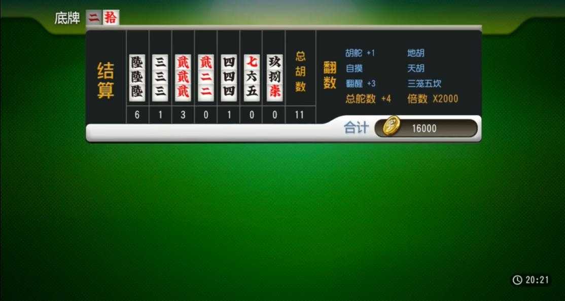 对对胡:即碰碰胡,111(1),111,111,111,11的牌型。