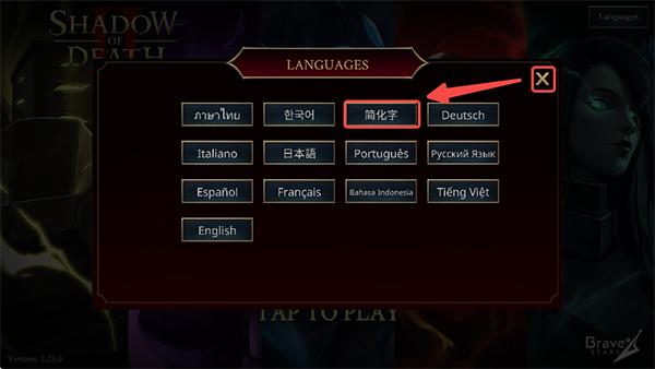 1、进入游戏后,玩家需要点击左上角的“language”。