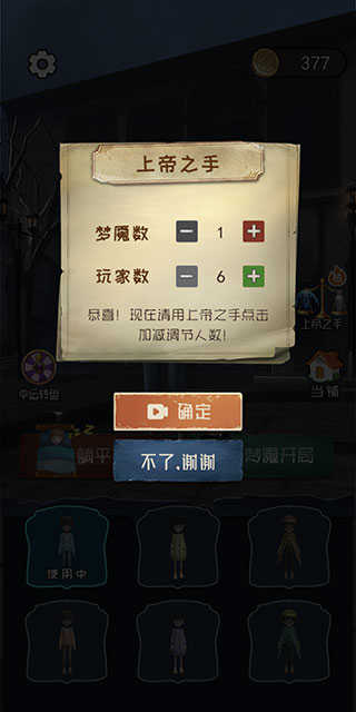 3、点击右侧上方的上帝之手按钮,可以自由调整游戏中的梦魇数和玩家数。