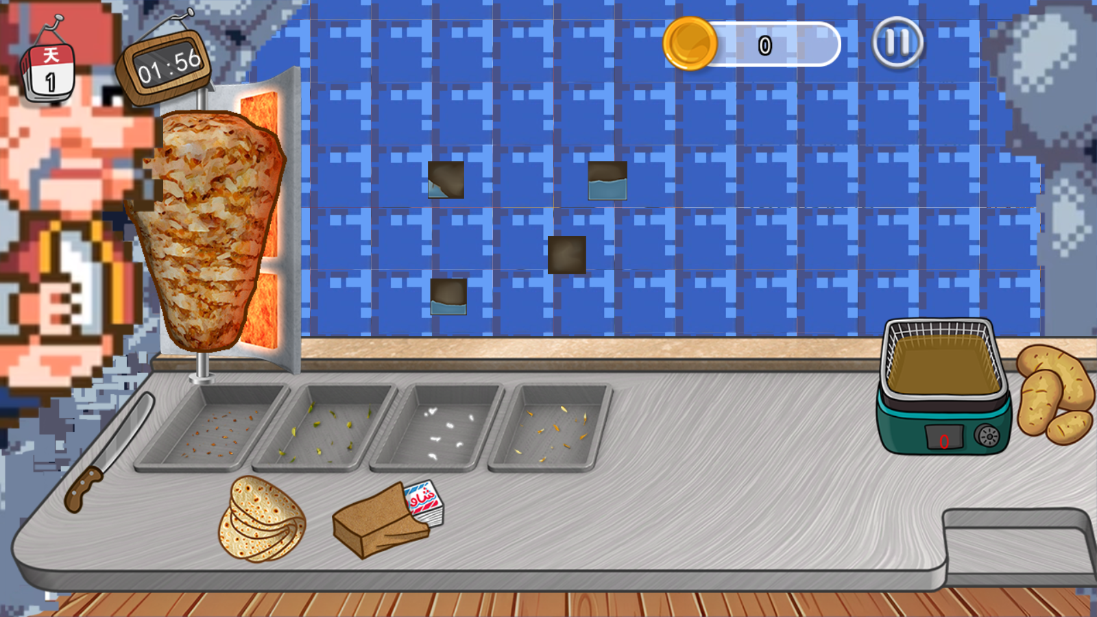 3、像素的画风带来别样趣味,需要根据顾客的需求制作沙威玛,每个都有对应的口味需求。