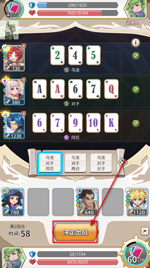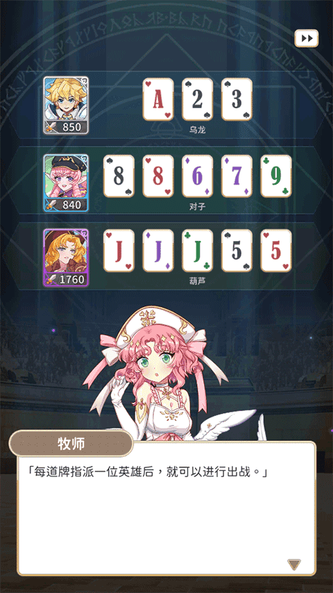 3、选好牌型之后,我们就需要选择角色了,有些角色的技能是有条件的,大家一定要仔细的观看。