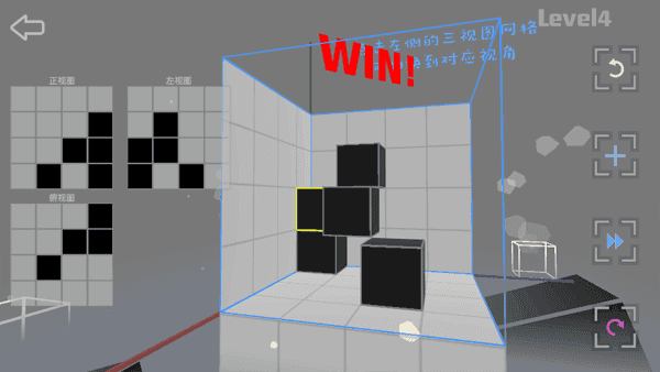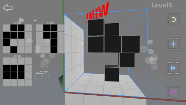 游戏有三种模式:闯关模式、4*4模式、5*5模式,玩家可以根据喜好自由选择,根据给出的三维图片搭出几何体,这款游戏对思维开发有很大的帮助,现在书本上不少题目也需要空间想象力,玩家在玩中训练。