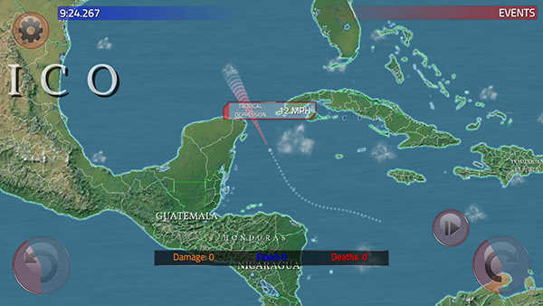 台风模拟器中文版是一款可以模拟台风行径路线的游戏。游戏采用了先进的3D技术,模拟了真实台风发生的情况,玩家可以通过设定点位来控制台风的路径,根据台风经过的地点,台风的数据情况也会实时变化。不同的路径设置也会导致台风从发生到消失的情况不同,也许台风可能会随着行进逐渐加强,也有可能刚生成不久就消散了。玩家可以根据自己的意愿为台风设置路径,并通过观察台风的数据变化了解台风行进的情况。