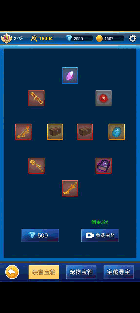 先说说寻宝,一共三种,装备,宠物,伙伴,也是钻石的主要消费点