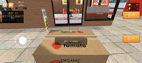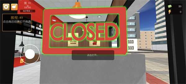 6、准备好一定的经营物资后,来到汉堡店外部的招牌处,点击将closed改为open;