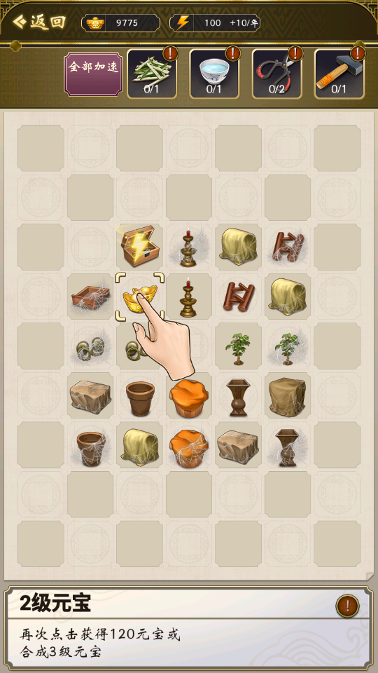 7、在“国库”中通过合成的方式获取金元宝,出售商品。