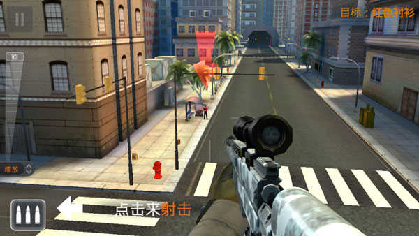 双手持着游戏屏幕,通过左右和上下翻转可以控制枪口的方向,移动到目标附近,再用右边的狙击镜,同样的操作可以控制瞄准的镜头,点击屏幕就可以射出子弹;另外习惯对于使用重力操控的小伙伴们,可以在设置内更改操作方式哟~~如果击中正确的目标则会有随着子弹射出过程的慢镜头演示。