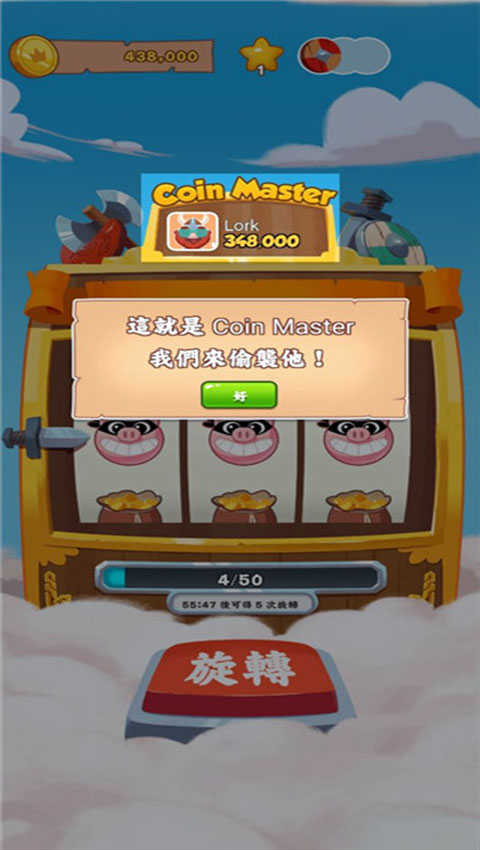 旋转轮盘会掉落好运财富,它们可能是攻击时间、战利品、护盾或突袭。若转中金币或金袋,即可赢得战利品,你就能透过游戏打造强大的村庄并提升等级。赢得护盾可保卫你的村庄以防其他想要攻击你的维京人。成为拥有最强村庄以及最多战利品的Coin Master