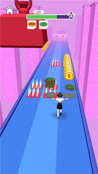 披萨大餐是一款跑酷手游。玩家需要控制角色在跑酷赛道上尽可能的拾取披萨,但也要注意赛道上的障碍,因为这些障碍可能会让您辛苦拾取的披萨前功尽弃,在赛道上拾取的披萨越多最终获取的游戏金币奖励就越多,所获得的奖励可以用来购买更多好看的的皮肤,游戏操作简单却充满挑战,既要选对披萨种类,又要灵活避开障碍,一路上还能收集闪闪发亮的金币,整个过程轻松又上瘾。