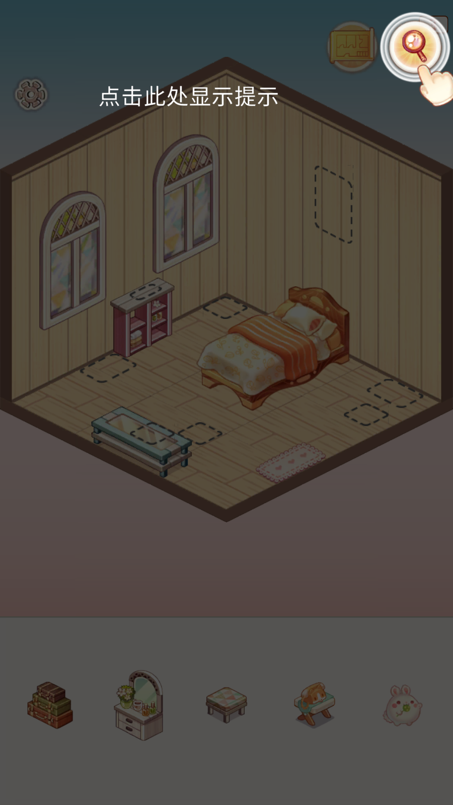 2、当玩家没有思路的时候,可以点击草图查看房间完成图,找到家具摆放位置的参考。