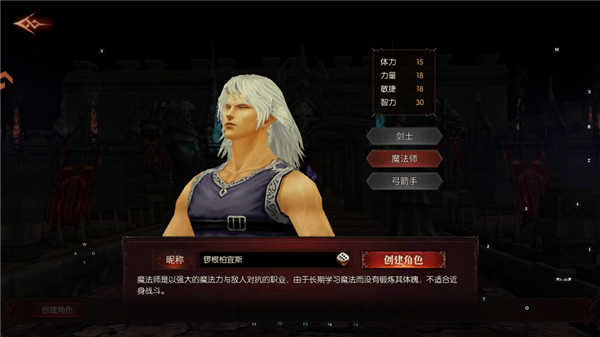 2、接下来,创建你的角色信息,选一个心仪的职业。