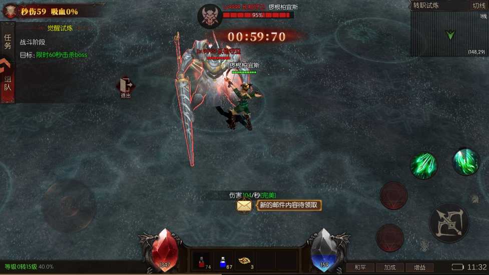 技能觉醒、装备词条突破(如4金极品装备)、附魔、圣环等多元养成,策略性强。
