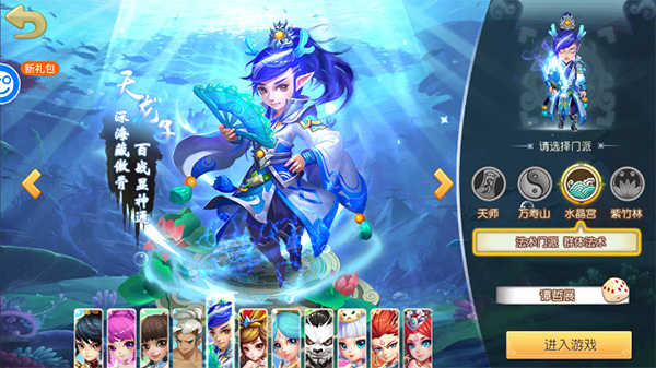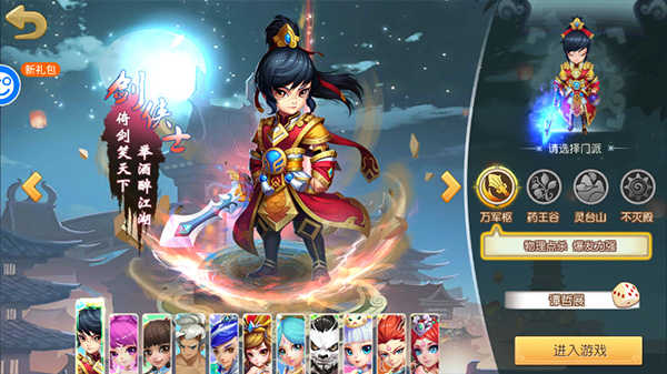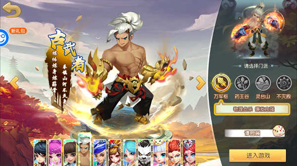 1、玩家打开并进入游戏后,就可以开始进行角色的创建啦,有十一种门派职业供玩家选择。