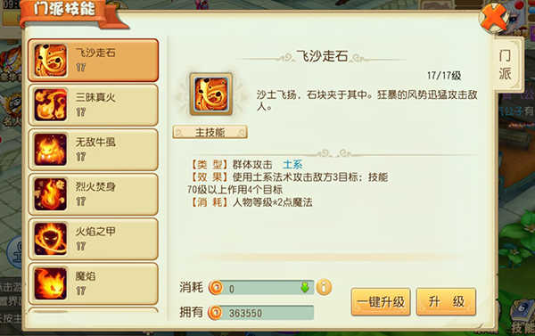 6、玩家还可以通过提升等级,学习丰富的技能,对技能进行培养升级,增加战斗力。