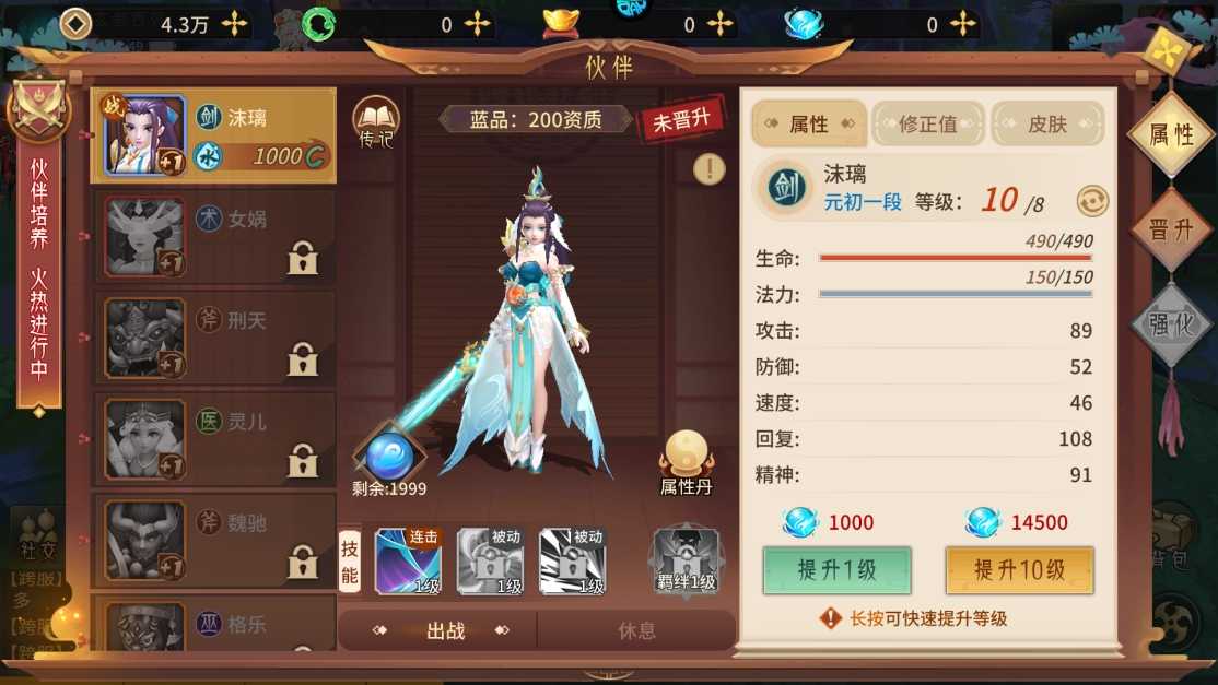 伙伴养成:培养伙伴,提升其属性和技能,增强整体实力。