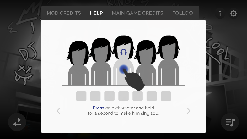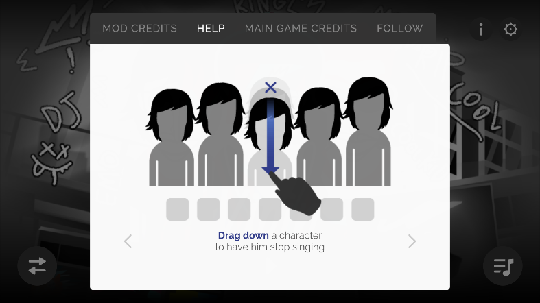 玩家可以通过拖动屏幕下方的音乐元素(代表不同乐器和声音的装饰物,如钢琴、架子鼓、音乐打击垫等)到游戏人物身上,来混合出属于自己的音乐。