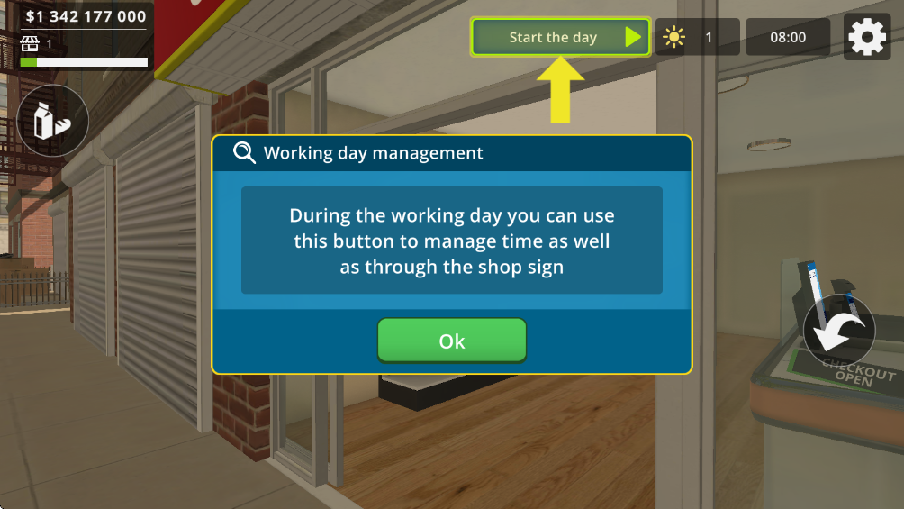 游戏中超市每天开门的时间段,为早上8点到晚上9点,九点之后就会进行客人付款。
