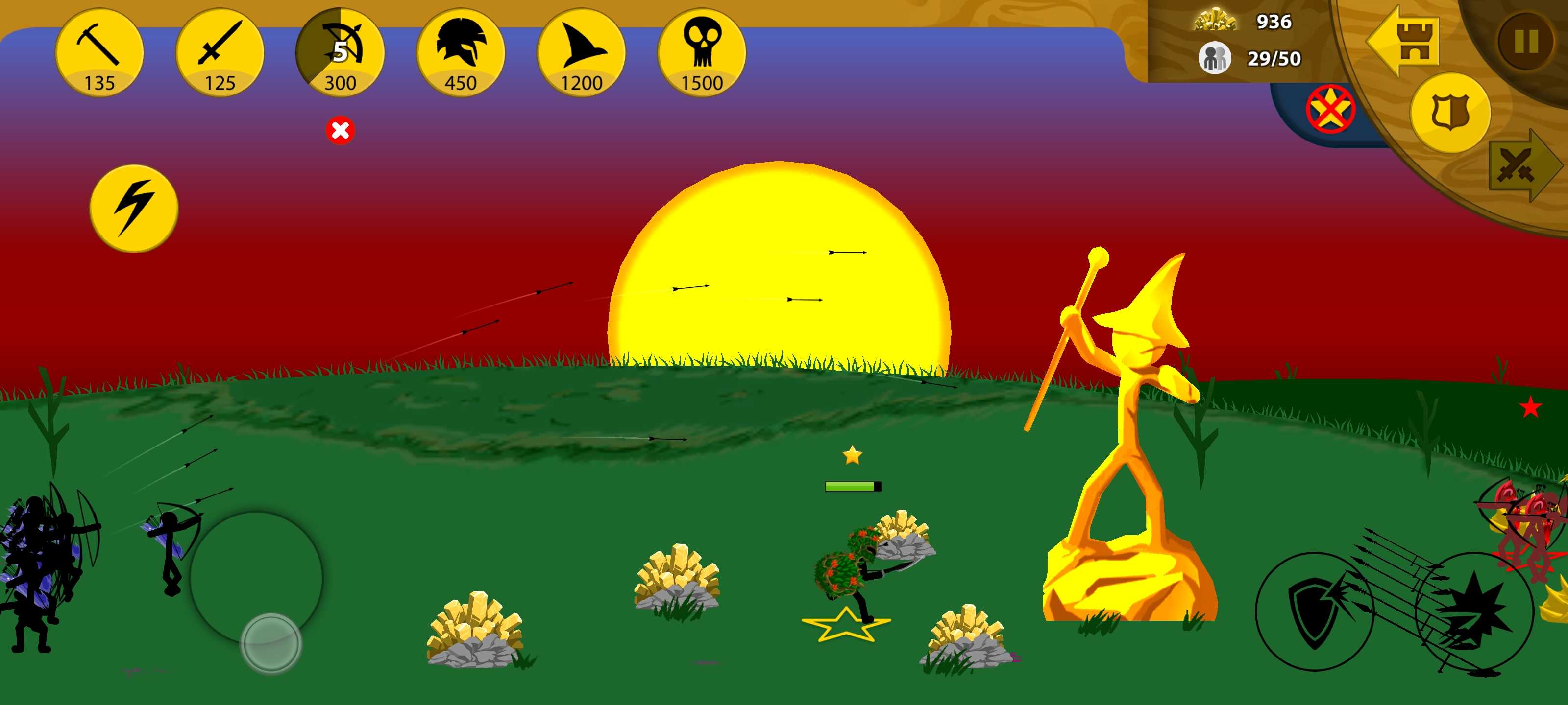 有足够的矿石,就能点击攻击类的火柴人,派遣它们去摧毁敌人的基地。