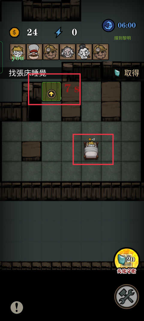 5、开局后,幸存者玩家的首要任务,是尽快找到最近的房间躺在床上躲避追捕,并通过收集的金币来升级床铺、门以及防御道具,提高安全等级,防止灵魂收割者将你拖走。