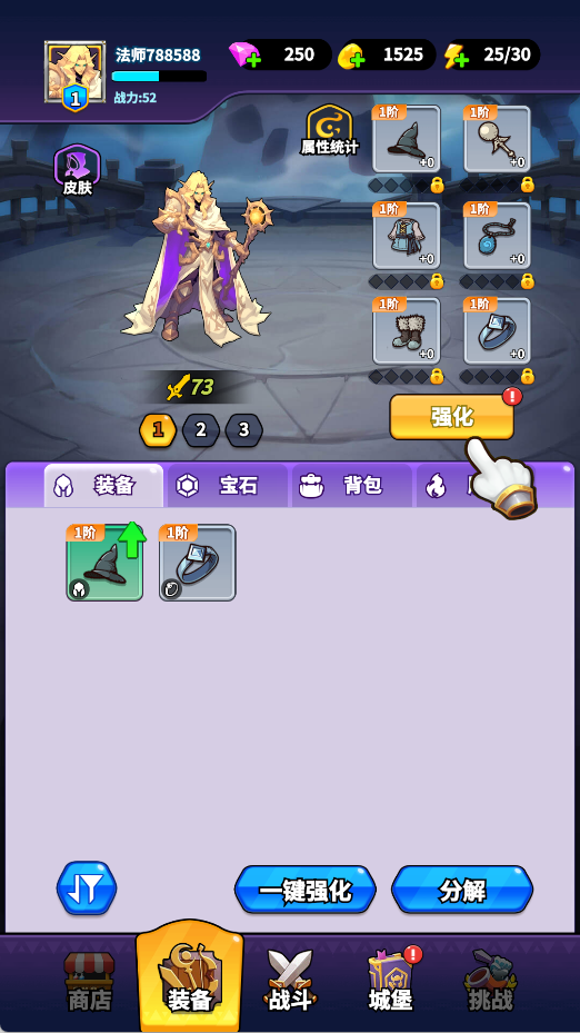 6、战斗结束后进入装备界面,点击“强化”提升装备等级,能够直观提升战力,为挑战更高难度关卡做好准备。
