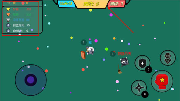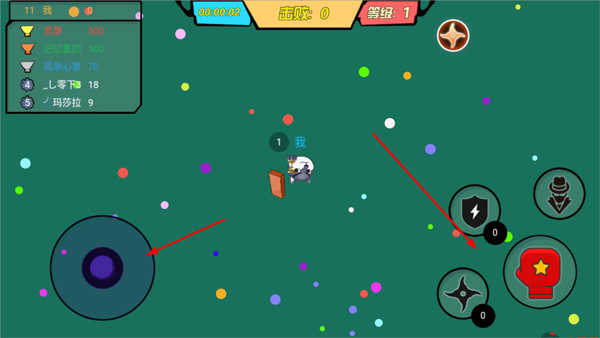 3、游戏过程中注意躲避比自己等级高的玩家,打败一个玩家即可升级;
