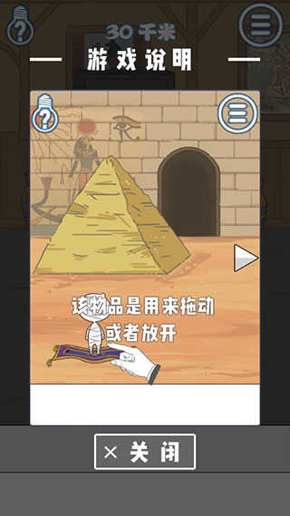 3、游戏说明,在每一个关卡中找到线索,帮助小木乃伊逃脱