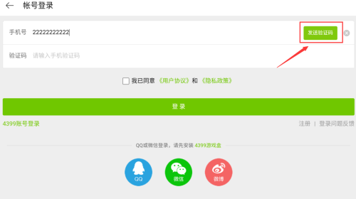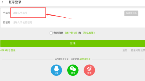 1、输入手机号码,准备获取验证码登录。