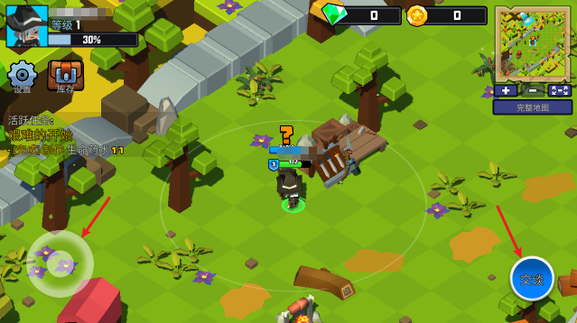 2、进入场景后,拖动左侧摇杆进行移动,靠近物品或者角色即可顶级右侧按钮互动。