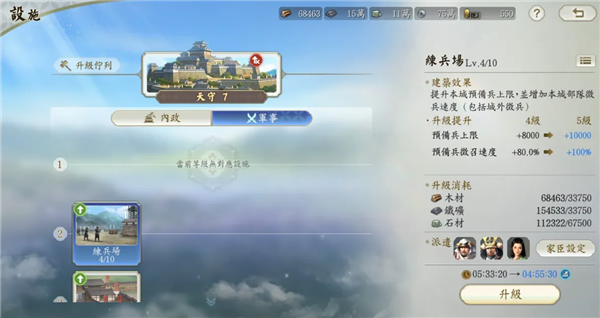 另外,你还需要善用劳力,执行「征发」指令直接获取资源,或是使用一日一次的「评定」和一日三次的「国众上纳」等每日行动,快速搜集升级任务建筑的资源,更容易累积资源和探索地图铺路。 并且,「评定」和「国众上纳」获取的资源甚至能够突破仓库上限,在初期连升级仓库都拮据的时候格外的有用。