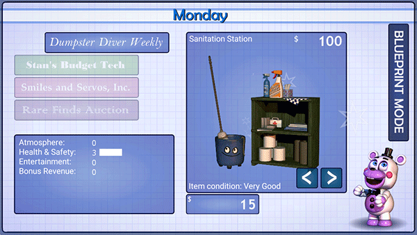 玩具熊的五夜后宫6披萨店模拟器是一款恐怖冒险解谜手游,游戏继承了前作的恐怖氛围和紧张刺激的游戏节奏。且玩家将扮演餐厅老板,白天经营餐厅售卖食物维持收入,夜晚则要面对神出鬼没的玩具熊,探索隐藏的秘密并收集线索兑换金币升级设施。游戏延续了系列一贯的紧张刺激与诡异氛围,同时加入丰富解谜小游戏和互动元素,让玩家在恐怖压抑的环境中体验策略经营与惊悚探索的双重乐趣。