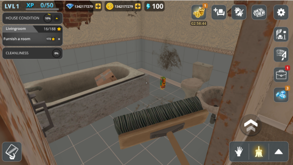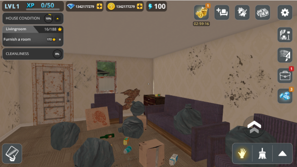 3.进入房屋,你可以看到脏乱差的场景,快点收拾它们吧。