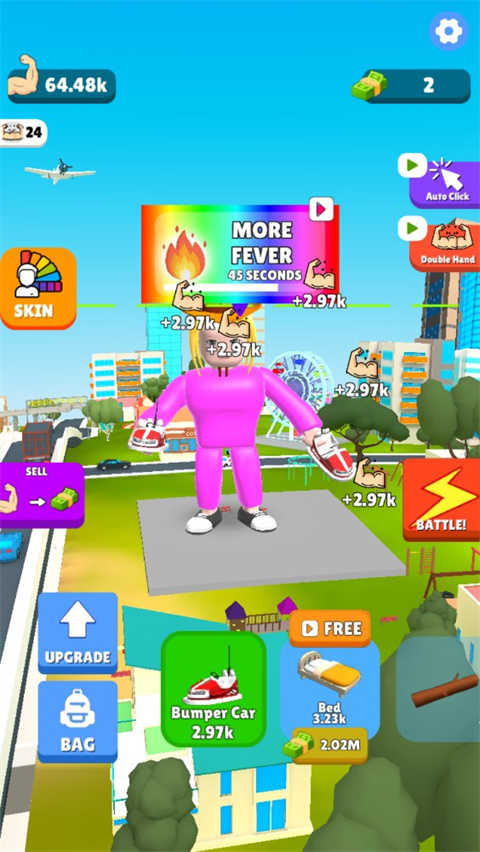 肌肉甜心简单的点击玩法结合竖屏的操作方式,让玩家即使是碎片时间也可单手游玩,畅享点击带来的乐趣,玩家将从一个小小的角色开始,不断通过点击的方式来锻炼身体,成为一个强大的男子汉或者女超人,并在和来自世界各地的其他玩家较量中战胜对手,成为令人闻风丧胆的大肌霸。除此之外,肌肉甜心还添加了海量的装扮选项,让玩家能够自由装扮自己的角色,以最帅气或者漂亮的样子参与挑战,向敌人展示自己的魅力。同时对战类玩法的加入也增加了游戏的趣味性,让玩家和全球玩家交流对战中感受十足的乐趣。