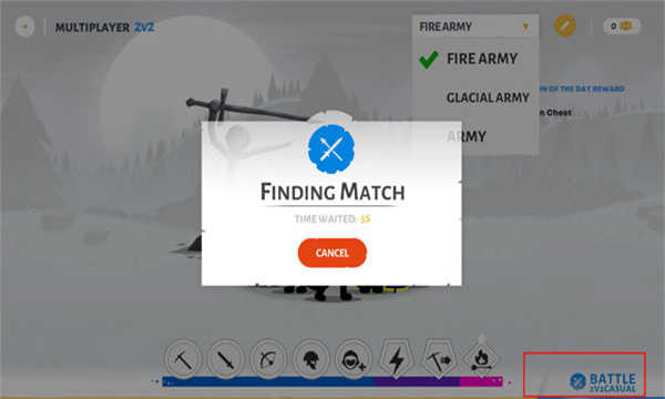 如果您希望参与2v2模式的联机对战,您需要点击中间的按钮来启动游戏。