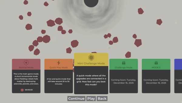 游戏设定在一个开放的宇宙环境中,玩家控制的黑洞最初只是一个微不足道的宇宙现象。