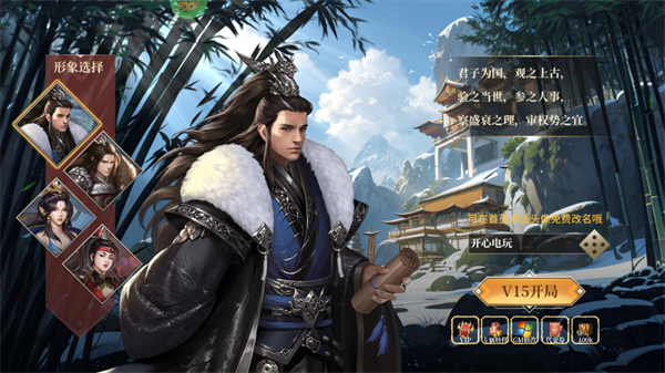 2、然后选择相应的角色并起一个好听的名字,然后点击V15开局。
