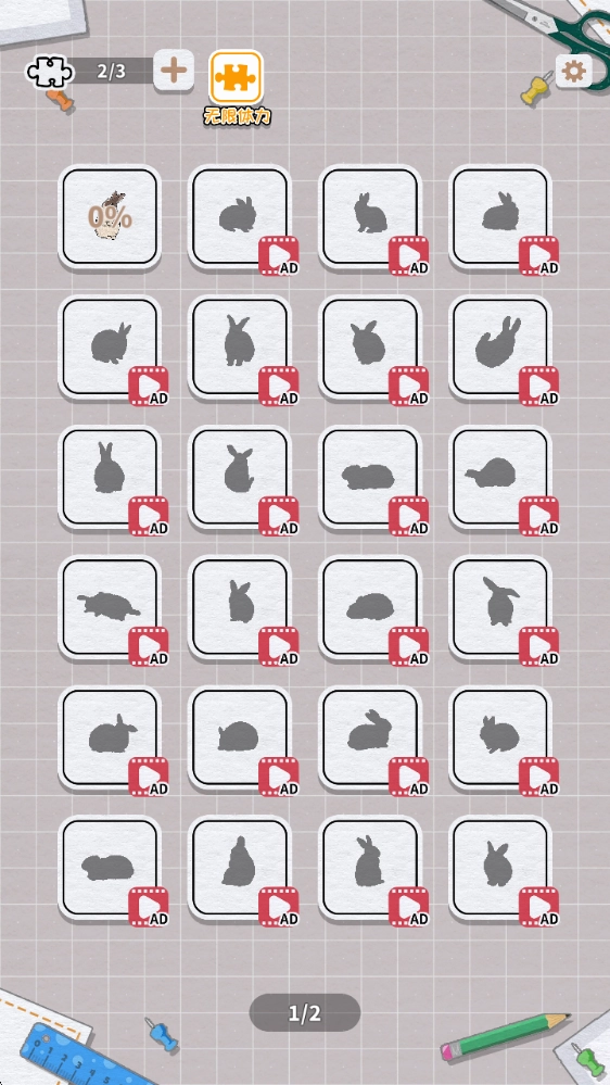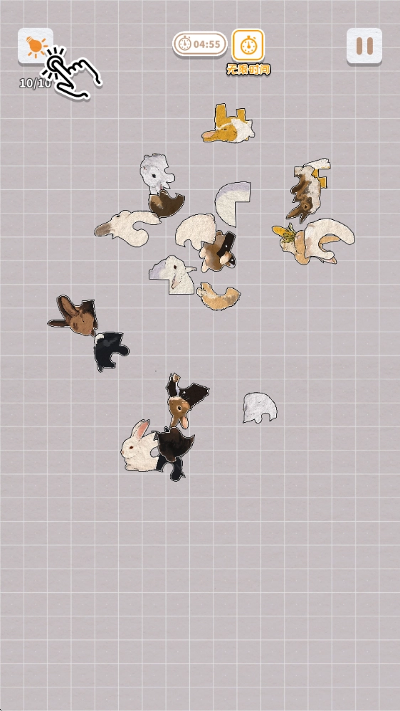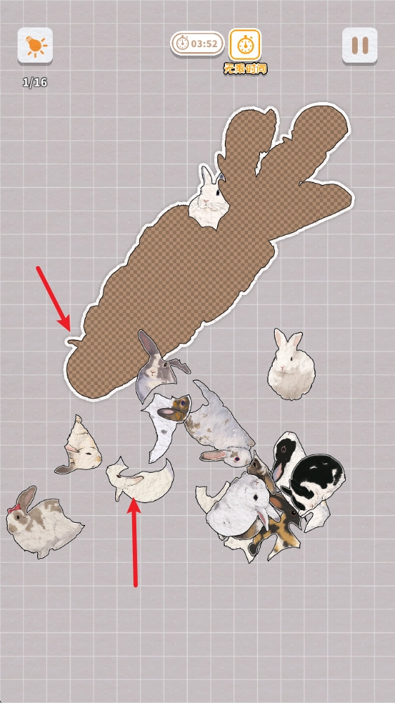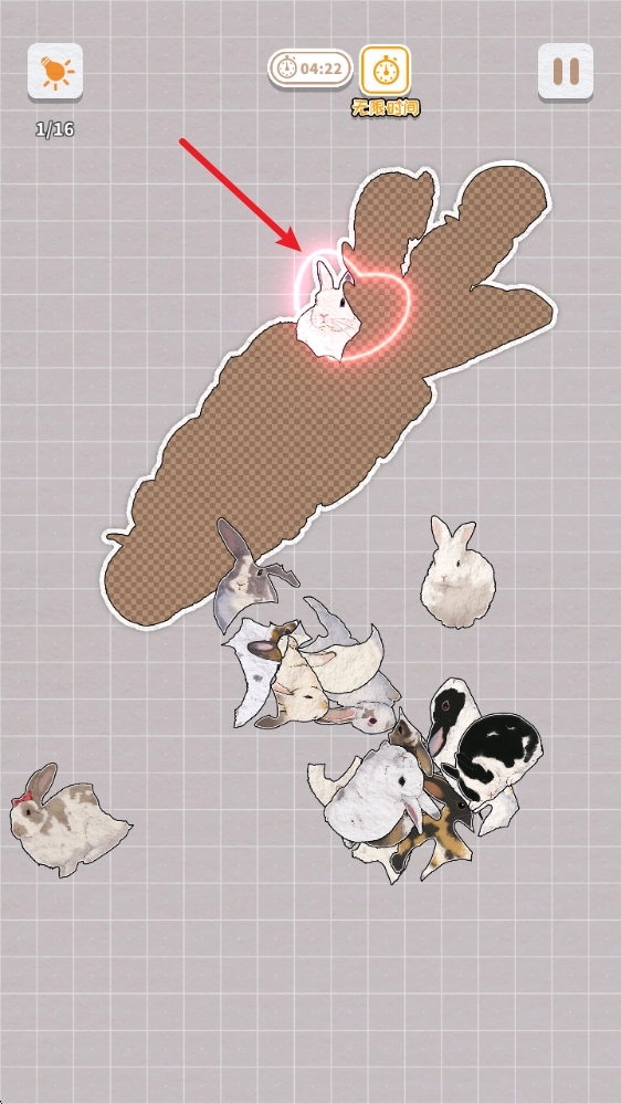 进入关卡后,就能看到萌萌的兔兔碎片,拖动它就能放到正确的位置啦。