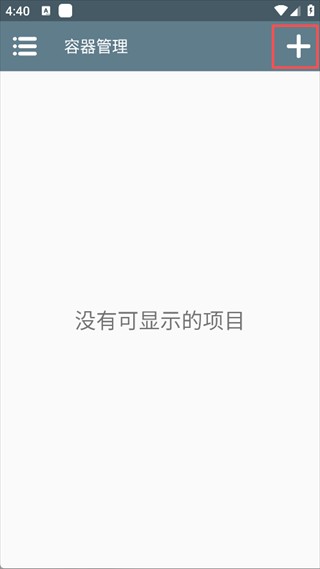 1、打开攀爬动物在一起手机版,点击右上角+号创建容器。